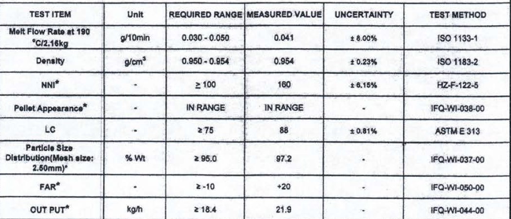 HFI 5110 is a high molecular weight, high-density polyethylene with broad molecular weight distribution and 1-hexene as a co-monomer, specially developed for producing thin films with excellent strength and rigidity. This product is suitable for manufacturing of high strength grocery sacks, shopping bags and high quality thin films for uni/multi-wall packaging. Films produced with this grade can be readily treated and printed to give high quality graphics. HFI 5110 has been manufactured under Basell license